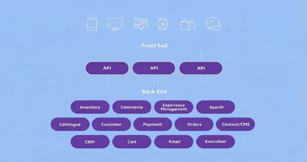 Here’s what changed. Your customers stopped living on desktops. They’re now browsing on TikTok, buying through Instagram, asking Alexa to reorder, and expecting the same flawless experience on a smartwatch as they get on a laptop. Your monolithic system, designed for a world where “web” meant a single desktop browser, is now trying to serve fifteen different touchpoints with code so tangled that your developers are terrified to touch it.