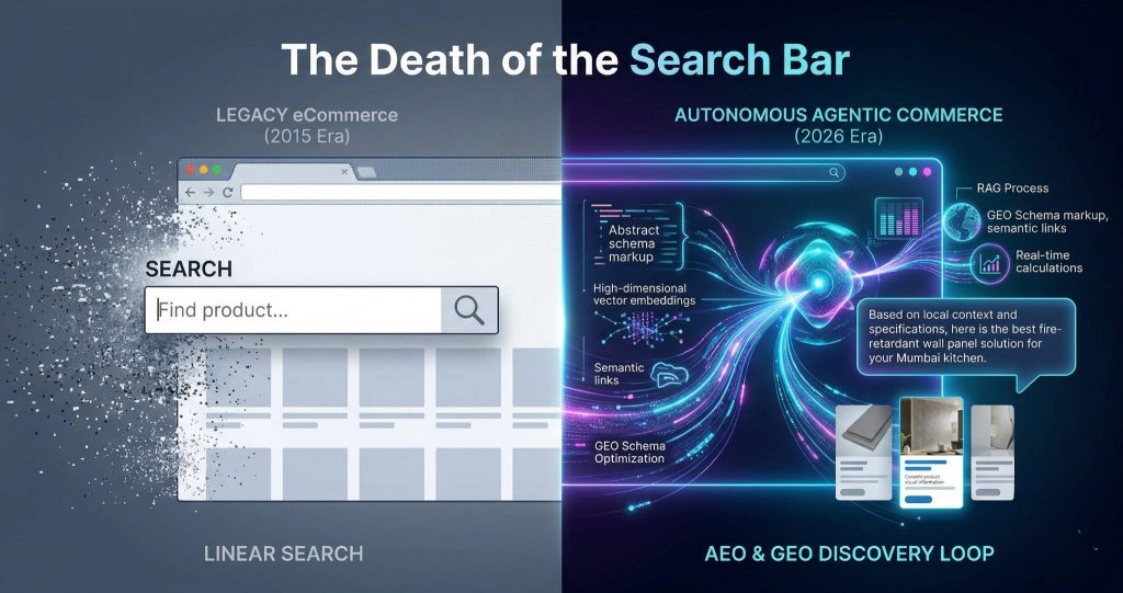The most consequential structural change in digital commerce right now is not a product feature or a platform update. It is a fundamental rewiring of how consumers discover products. For four decades, eCommerce operated on a simple premise: the consumer types a query into a search engine, scans a results page, and clicks. That loop is breaking.